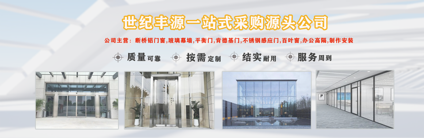 天津世紀豐源門窗有限公司從事斷橋鋁門窗,玻璃幕墻,平衡門,肯德基門,不銹鋼感應門,百葉窗,辦公高隔,制作安裝一站式訂制生產及配套服務等。  公司自成立以來,始終堅持以人才為本、誠信立業的經營原則,薈萃業界精英,成熟的技術、管理方法及企業經驗與國內企業的具體實際相結合,為企業供給各個方面的解決方案,使企業在激烈的市場競爭中始終堅持競爭力,實現企業快速、穩(wěn)定地發(fā)展。  質量好、服務好、才能信譽好,公司已在諸多領域取得輝煌成績,愿意成為您可信賴的長期合作伙伴。  讓我們攜手同行,共同實現“讓普通老百姓都用得上高端門窗”...